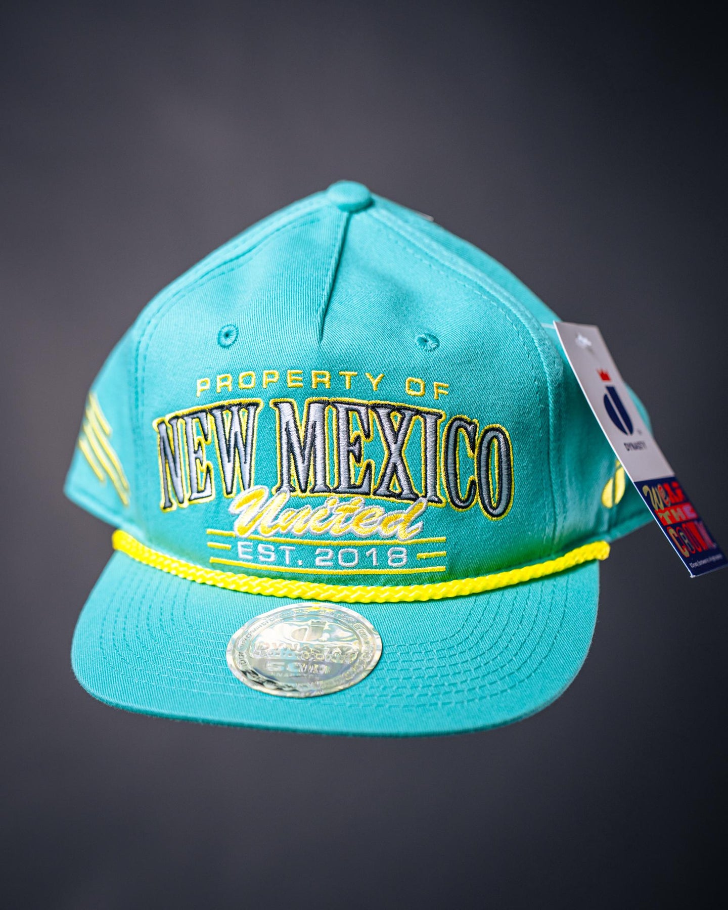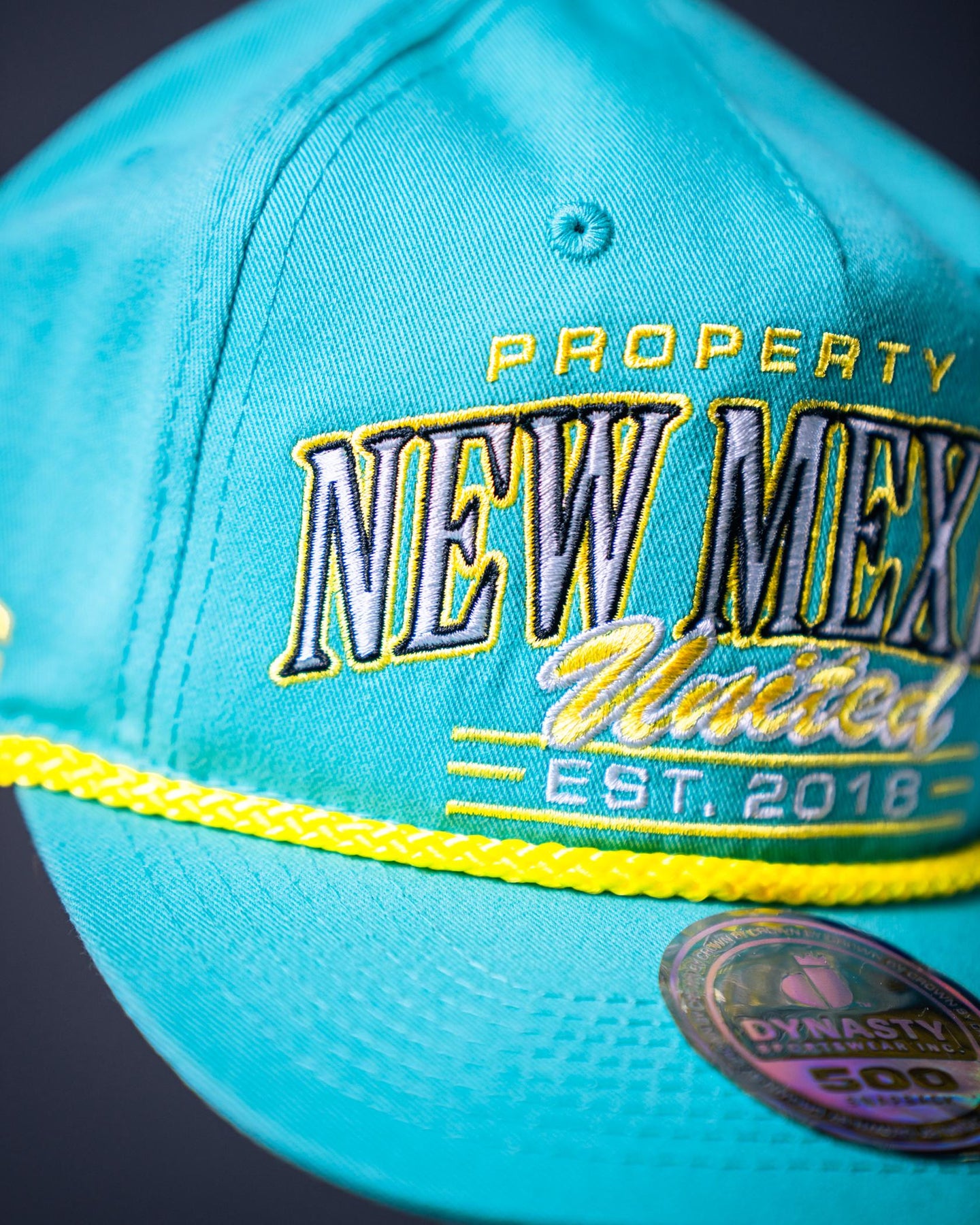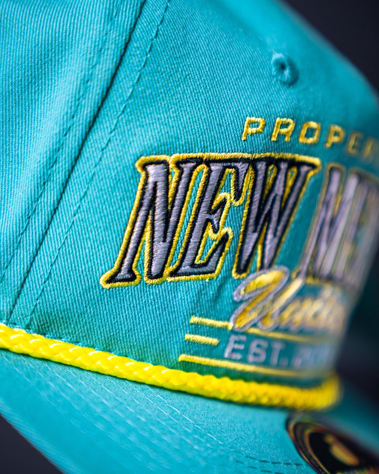 A bold twist on a timeless look. The Turquoise Property Hat carries a vibrant turquoise base that stands out from the crowd. Finished with a structured build, yellow rope detail, and outlined lettering, it’s a confident statement piece rooted in club identity.